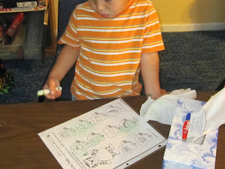 Then we had a worksheet that had words that began with "t" sounds such as tiger, toothbrush